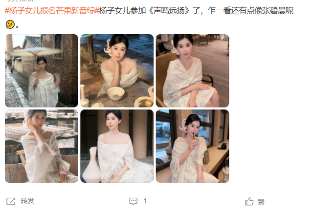 各位读者,你们喜欢看“选秀综艺”吗?近日,网上传出消息,芒果的新选秀综艺《声鸣远扬2025》正在录制中,让大家没想到的是,杨子的女儿竟参与录制,对方的长相被指像翻版“张碧晨”,各位读者,你们怎么看呢?
