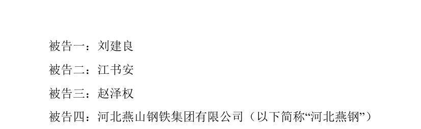 公告显示,这起案件的被告共有四名,包括三名曾在云南新立担任要职的自然人——刘建良、江书安、赵泽权,以及河北燕山钢铁集团有限公司(下称“河北燕钢”)。龙佰集团指控他们非法使用其氯化法钛白粉生产技术,严重侵犯了公司的商业秘密。