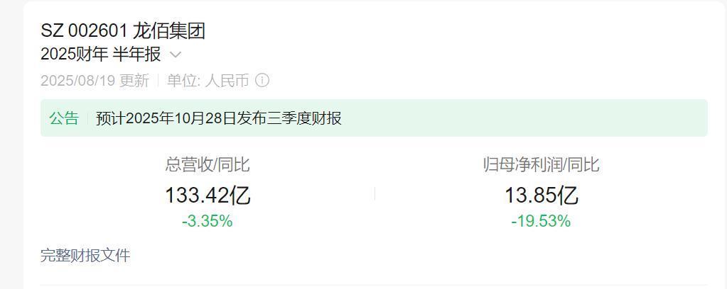 8月18日,龙佰集团发布2025年半年报,报告期内,龙佰集团营业收入为133.31亿元,同比减少3.35%,归属于上市公司股东的净利润为13.85亿元,同比减少19.53%;经营活动产生的现金流量净额为15.20亿元,同比增长10.84%。