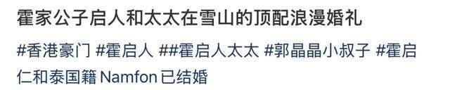 有一位网友在社交平台上发文:霍家公子启仁和太太在雪山的顶配浪漫婚礼。